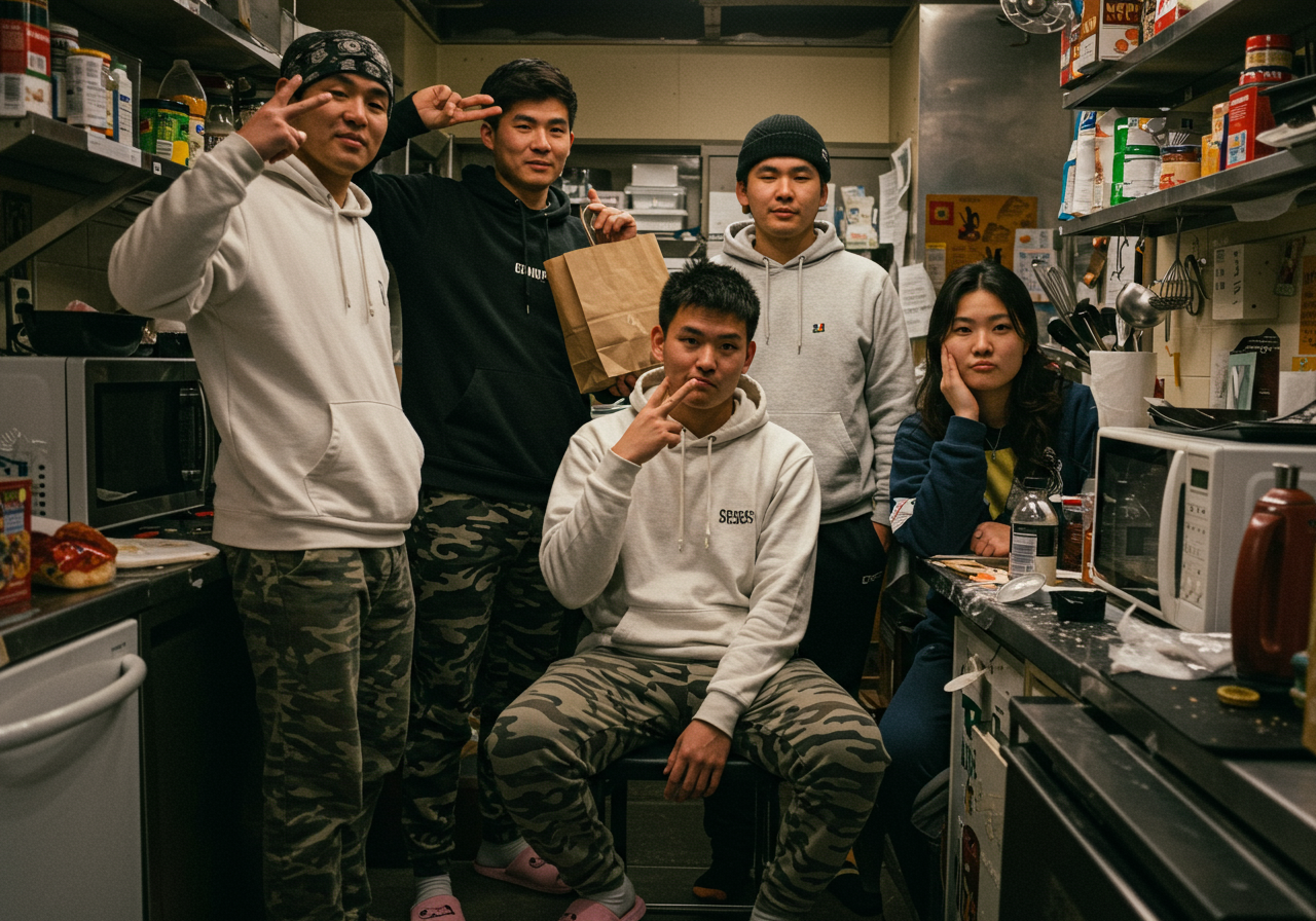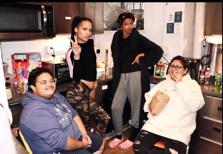 Trinity Place Shelter LGBTQ residents hanging out in the shelter’s kitchen.
